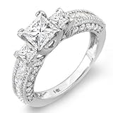 14k White Gold Princess & Round Diamond Ladies Semi Mount 3 stone Engagement Bridal Ring (1.65cttw, G-H Color, SI-I Clarity) Center not included (Jewelry)