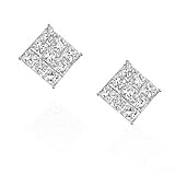 Square Invisible Cut CZ Basket Set Silver Men Unisex Stud Earrings (1ct. 6mm) (Jewelry) newly tagged "diamond"